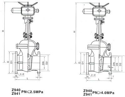 三、Z941H-16C DN50鑄鋼電動(dòng)閘閥 耐溫425℃ 法蘭連接電動(dòng)閘閥外形圖:
